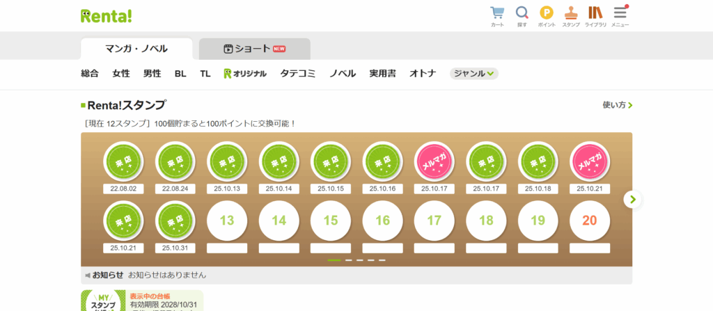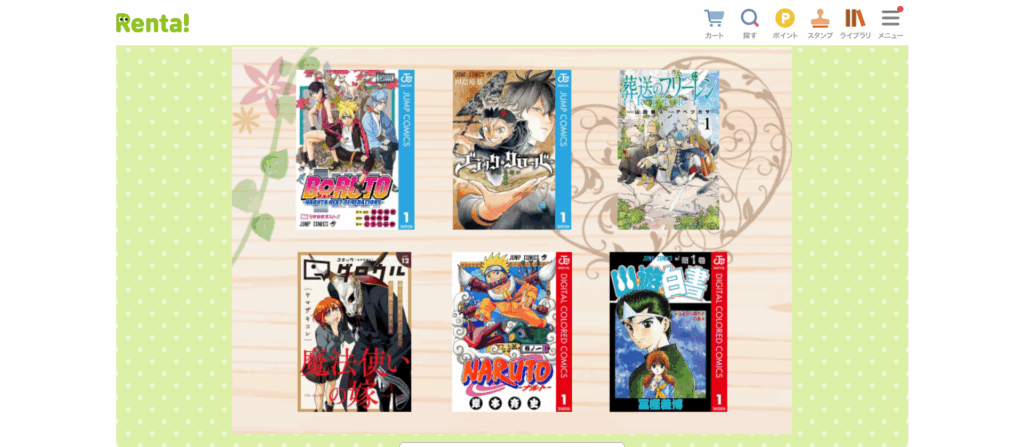 Rentaとはマンガをレンタルできるサービスです。100ポイントからレンタルできお得に楽しめます。もちろん購入もできます。下記のように推し本棚として並べて楽しむこともできます。